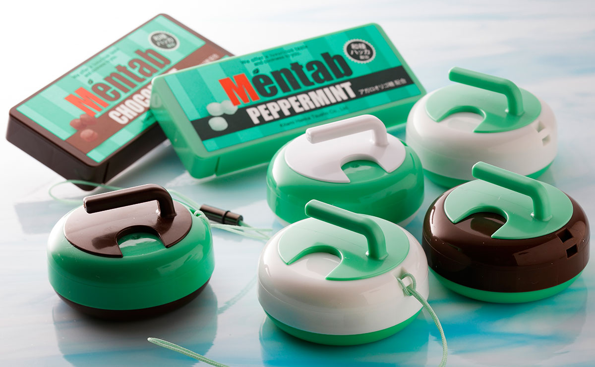 和種ハッカを配合したミントタブレット。メンタブチョコミントは、やさしい甘さと爽やかな清涼感が絶妙にマッチング。従来のミント系タブレットとはひと味違う風味です。