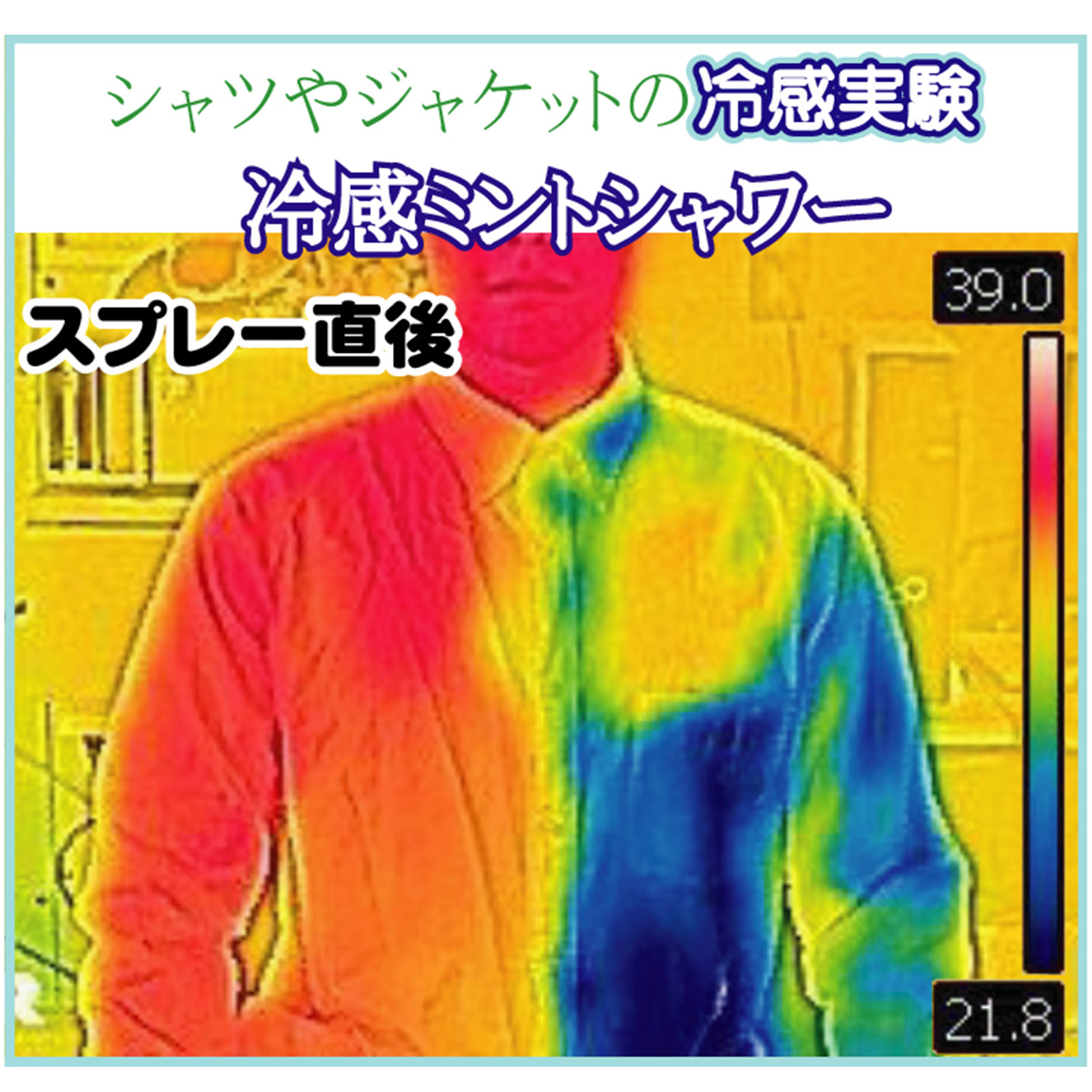 温度30℃、湿度50%の室内でシャツの右半分にスプレーし、表面温度を測定しました。表面温度の変化をご覧ください。